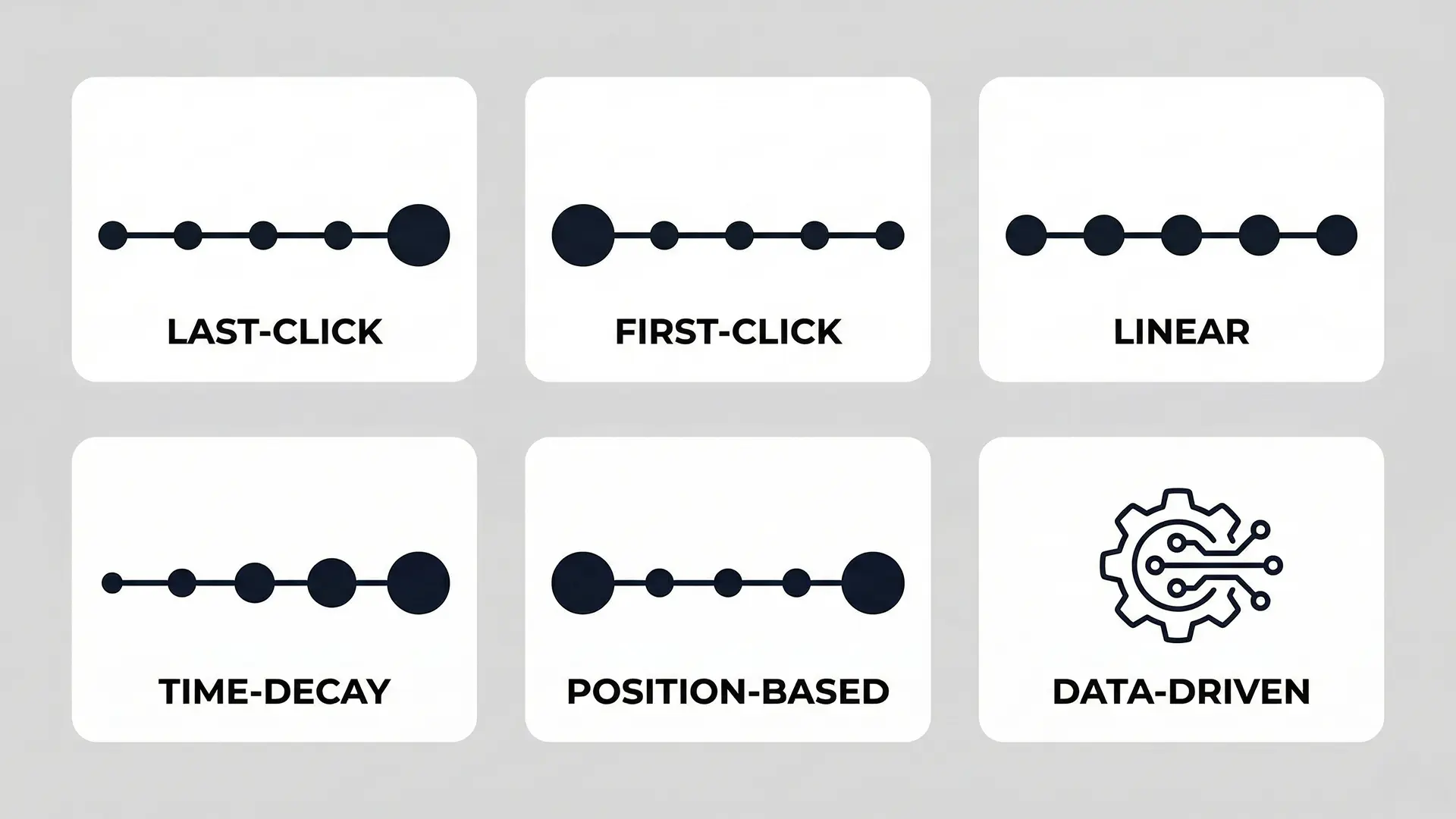 6. Data-Driven Attribution Machine learning analyzes thousands of journeys to figure out what actually influences conversions. Best for high-volume businesses (400+ conversions per month).